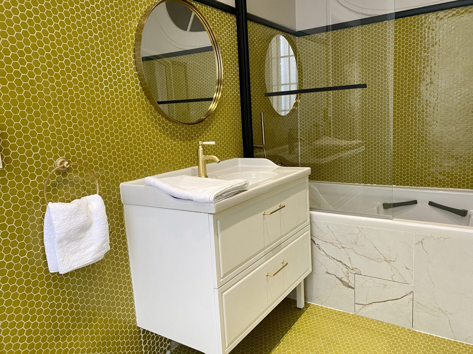 - Deux salles de bains : une salle de bain privative attenante à la chambre principale avec baignoire, et une salle de douche séparée avec toilette. Un toilette indépendant complète le logement.